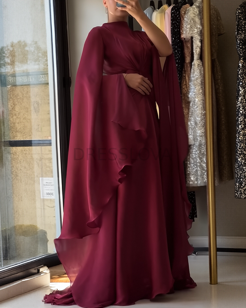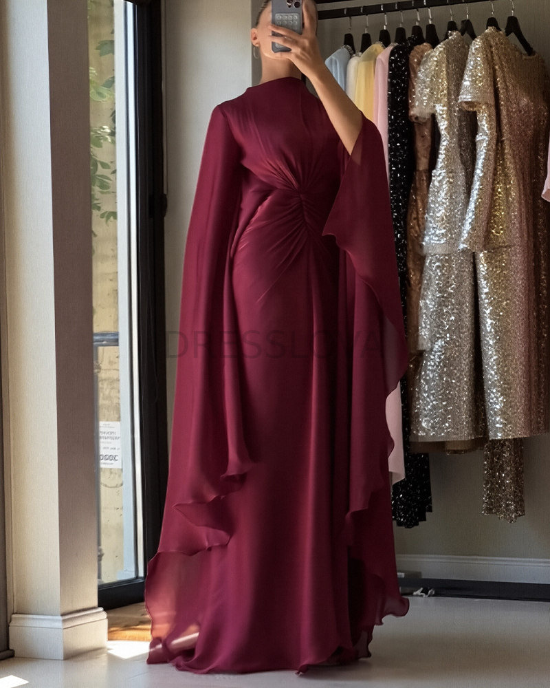 Why Choose Burgundy Draped Bell Sleeve Maxi Dress | Elegant Evening Maxi Dress