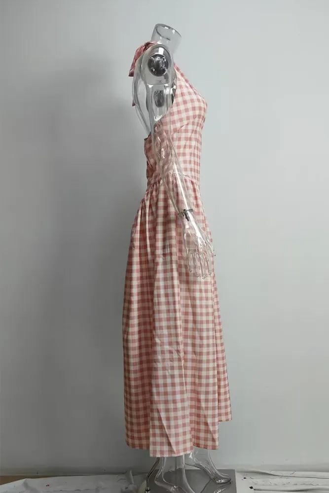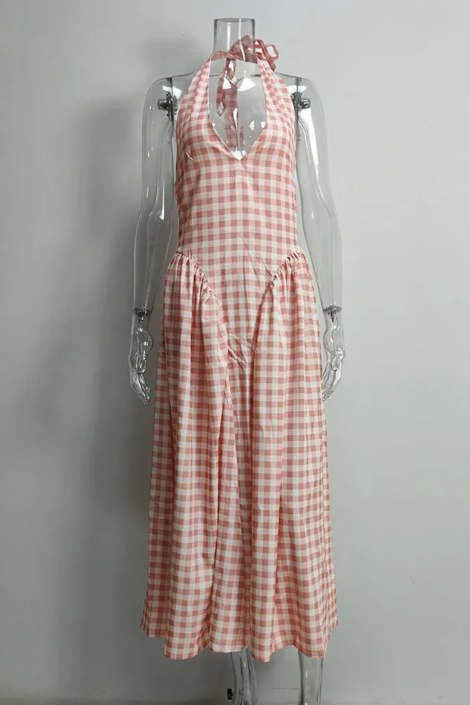 Discover the Plaid Halter Backless Lace-Up Mini Dress | Elegant Statement Mini Dress, a true wardrobe essential